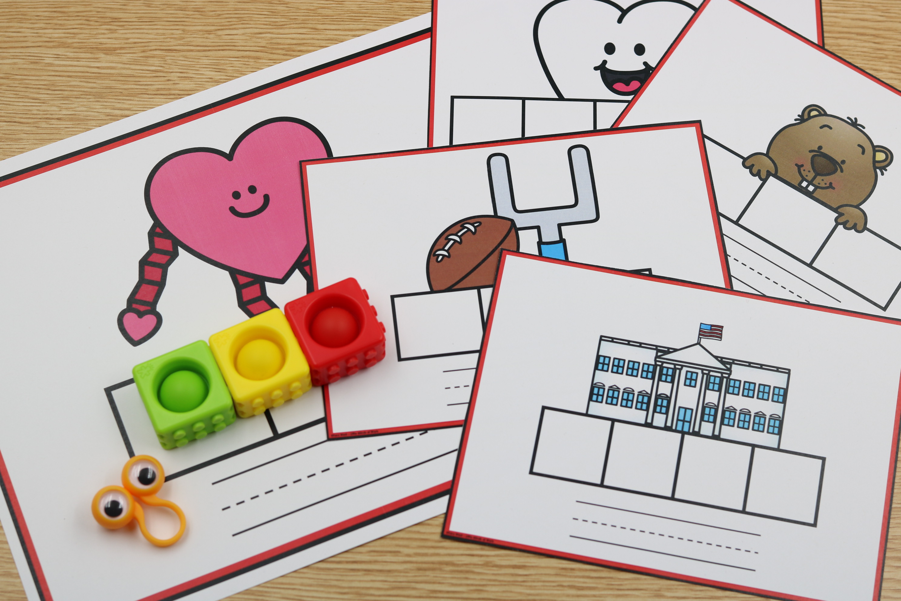 Access this set of February-themed mapping mats. These are a perfect addition to your small-group table. These mats are sure to keep students engaging as they work on phoneme to grapheme mapping. Access the free download HERE.