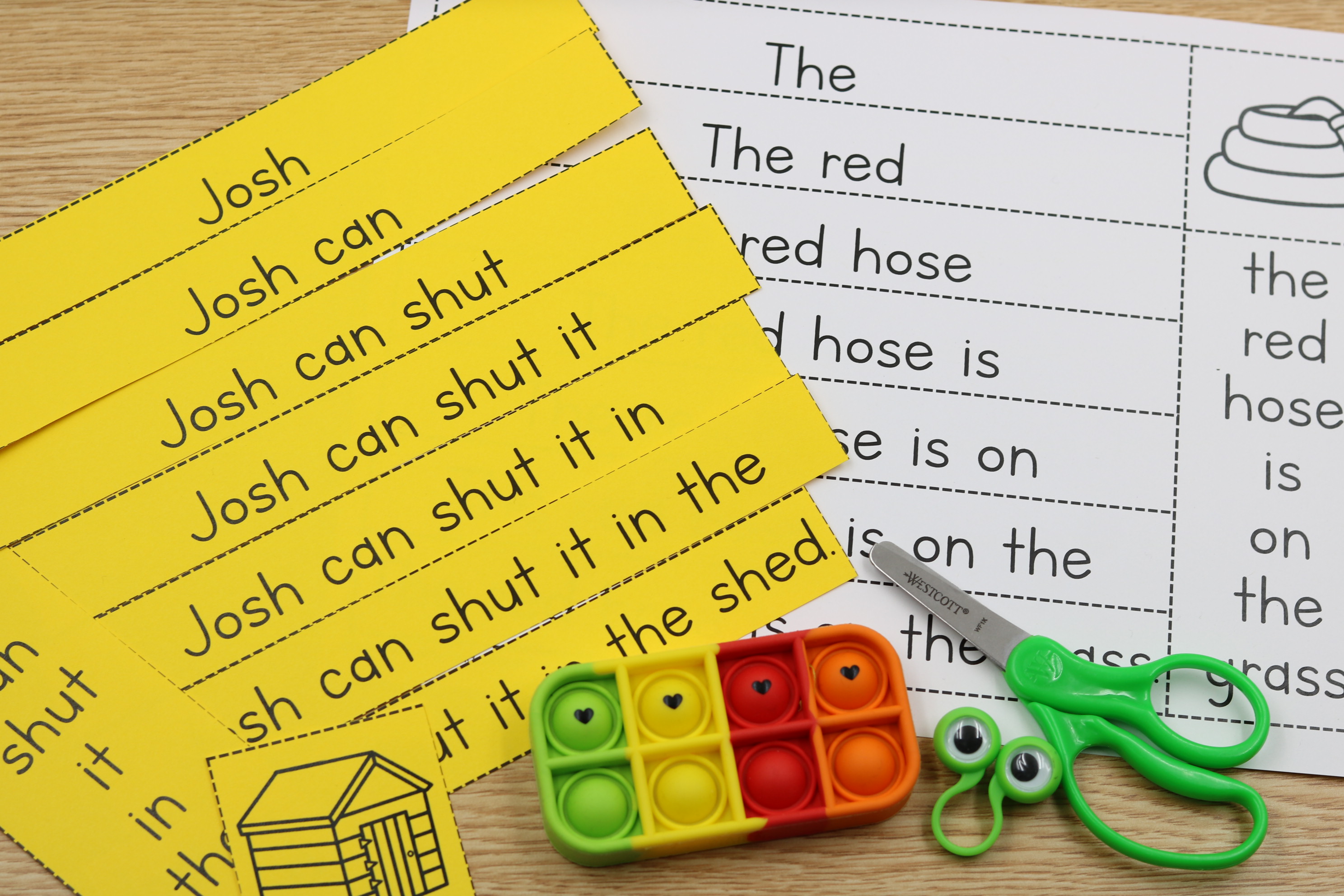 • A decoding strip featuring the target words, which can be used before reading to preview words or after reading for reinforcement