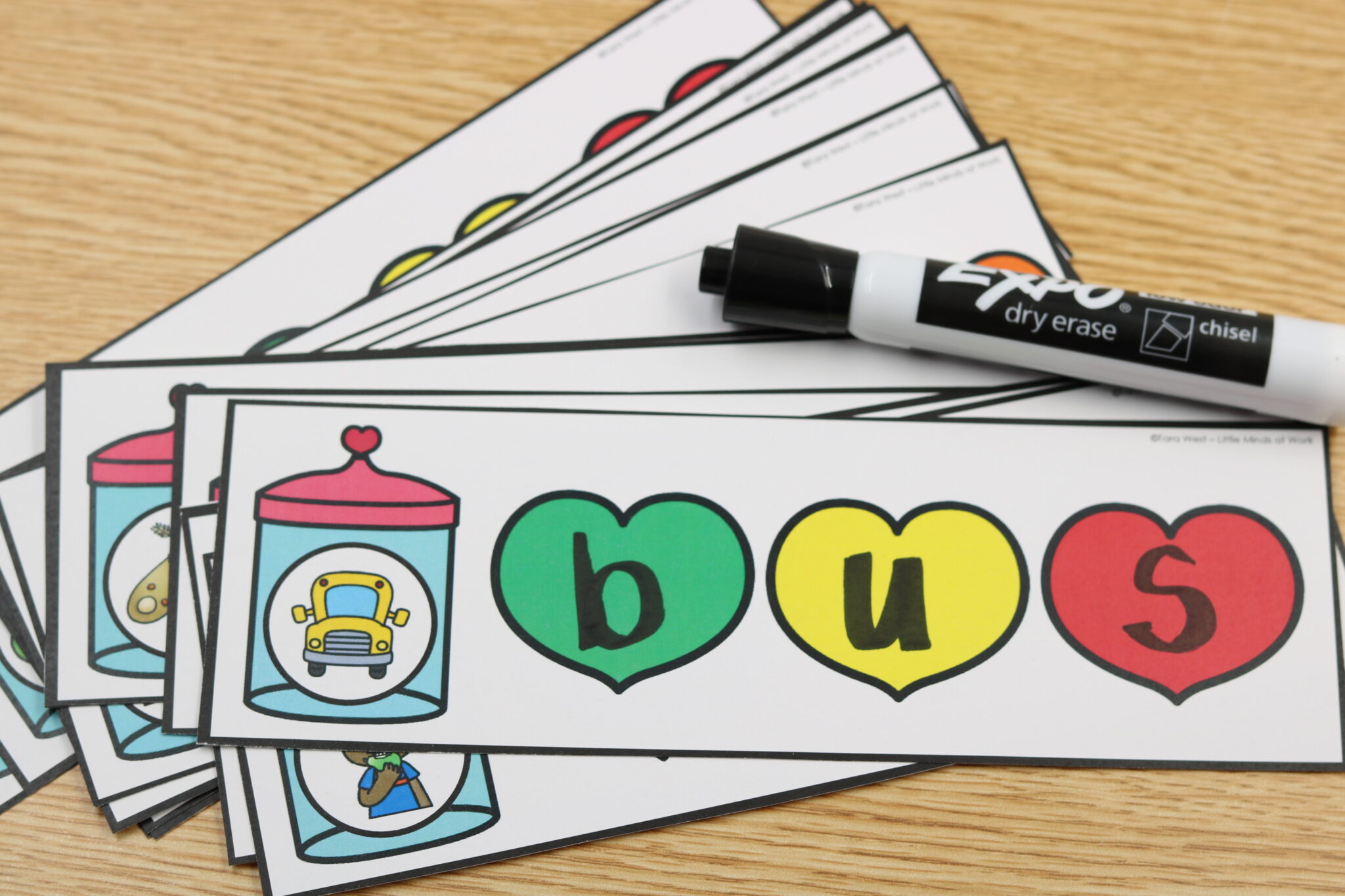 • Heart-themed phonics writing strips