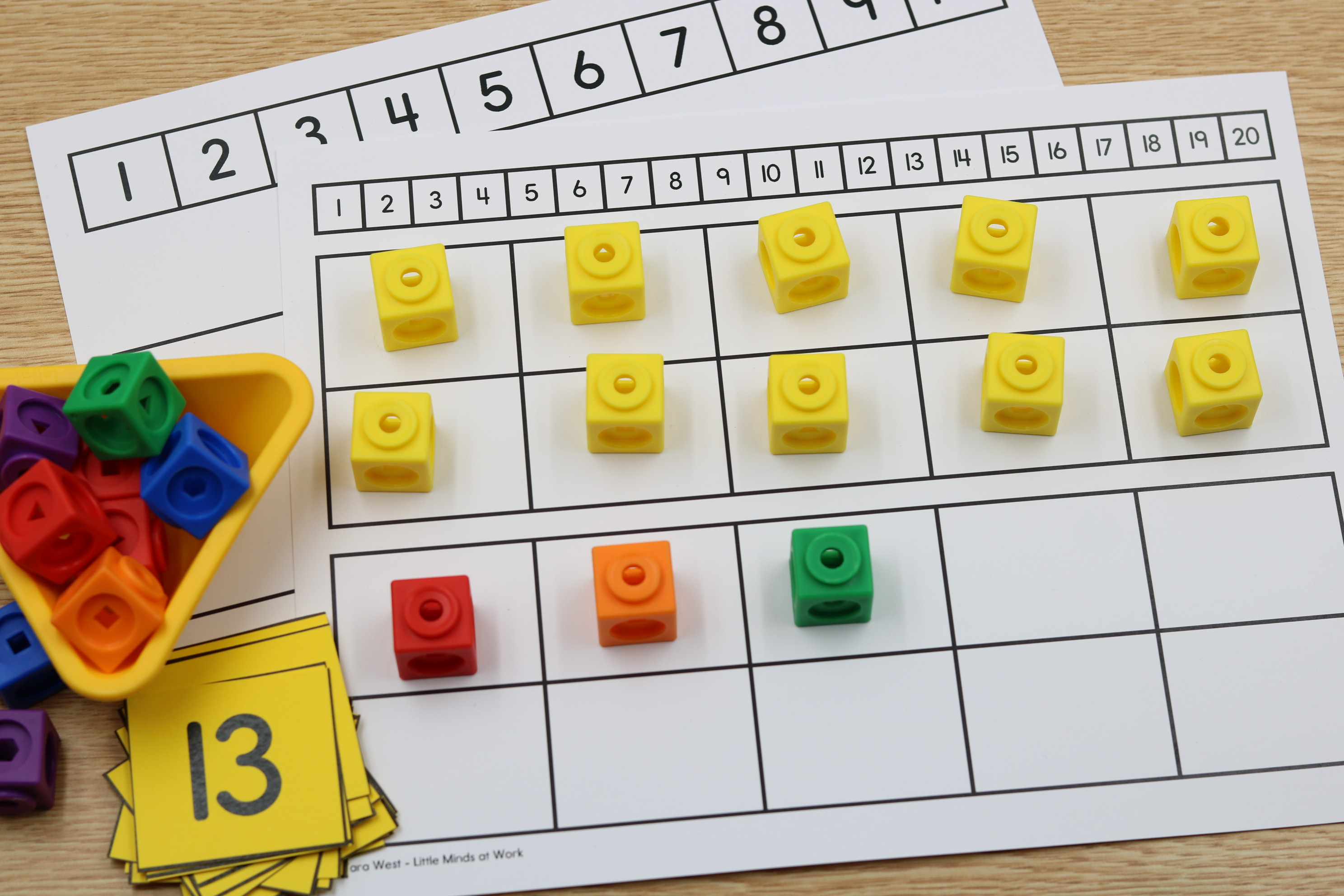 These boards pair well with counters, cubes, chips, mini erasers, pom-poms, or any classroom manipulatives.